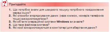 Як було зазначено раніше, інформаційні системи повинні забезпечувати збирання, передавання, зберігання, опрацювання повідомлень. Для реалізації цих процесів треба вміти розрізняти одне повідомлення від іншого. Це можливо, якщо кожному з них надати унікальне ім’я та визначити місце для його зберігання.
